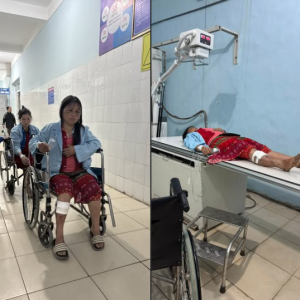 Cô giáo đưa chị May (bị chồng bạo hành) đi chụp chiếu khám xét hết rồi ạ! Chị ấy giờ đau không ngủ được
